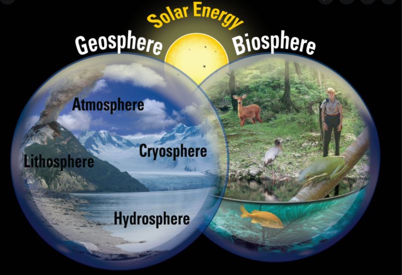 Before tackling that, it is instructive to look at the Earth another way: as a whole the Earth can be said to consist of four spheres: